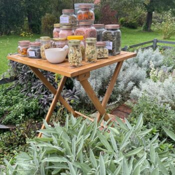 To miejsce, w którym wiedza o roślinach leczniczych spotyka się z przyjemnością pieczenia i pachnącymi chwilami w kuchni. Gdzie naturalne barwniki do ciast otrzymywane z ziół i kwiatów jadalnych, aromatyczne syropy czy świeże zioła z ogrodu stają się elementem codzienności.
